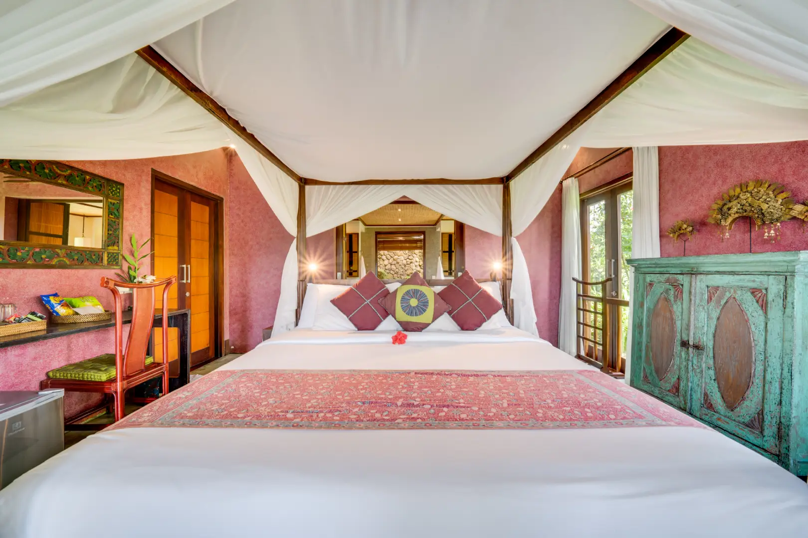 This 60 m² Villa Pelangi features one double bed and comes with a balcony and terrace offering garden, pool, and mountain views. It also provides modern amenities such as air conditioning, minibar, free Wi-Fi, a private bathroom with a bathtub, and a complimentary extra bed and breakfast for one child (0-12 years old).